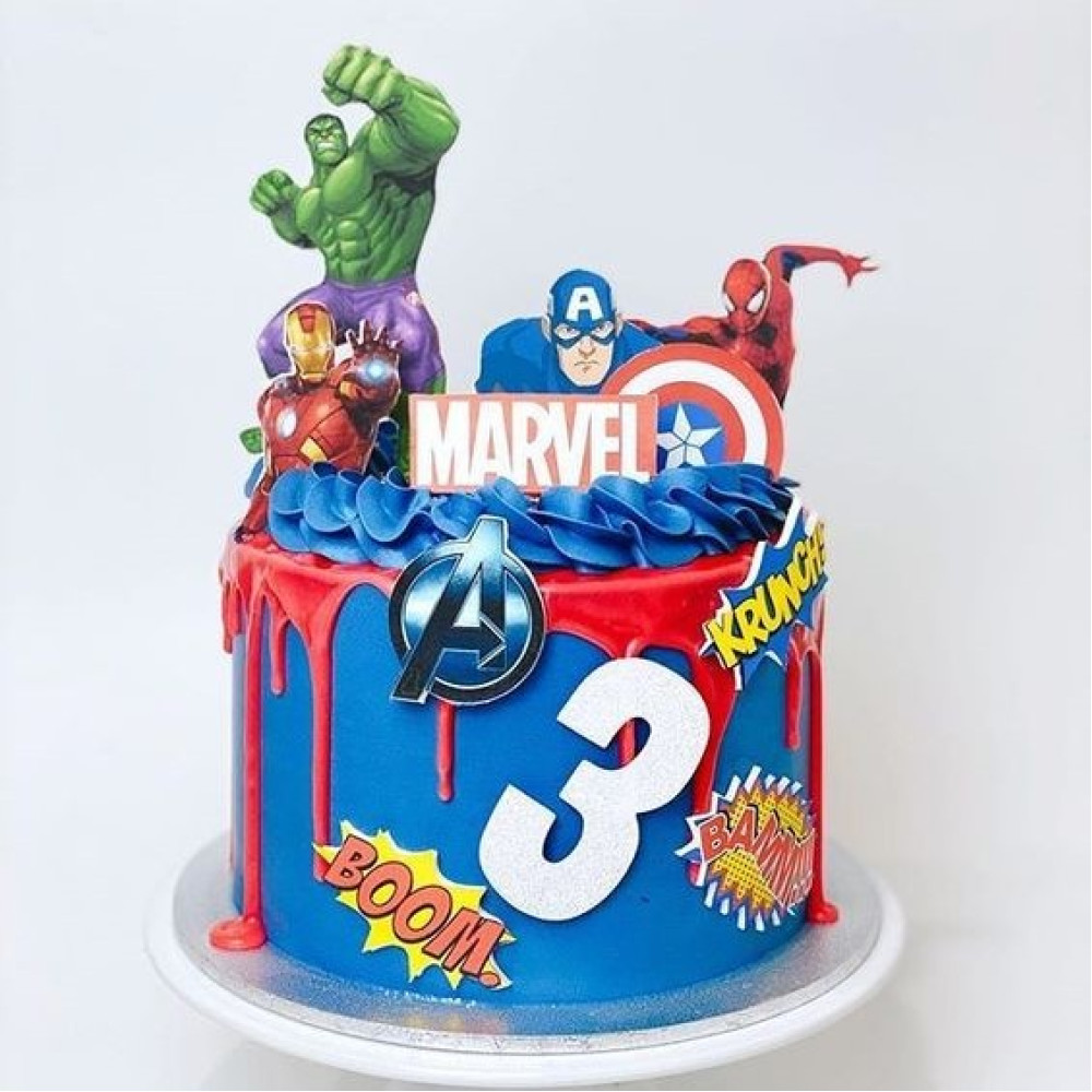 Unleash the power of celebration with our Marvel super heroes cake, the ultimate treat for fans of Iron Man, Spider-man, Captain America, Thor, hulk and more. This vibrant action packed cake is crafted with finest ingredients and featuring iconic superheroes designs which is available in choice of flavours and best for any celebration.